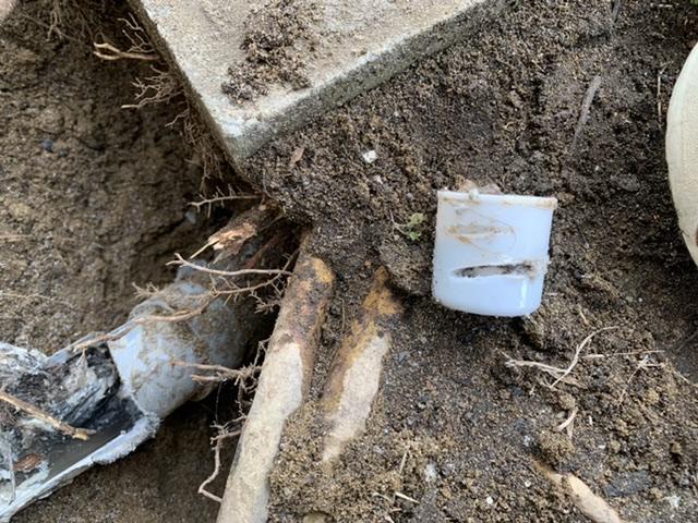 ![]() 仕方なく配管切ってみたら何かのキャップが出てきました これでは流れませんね。